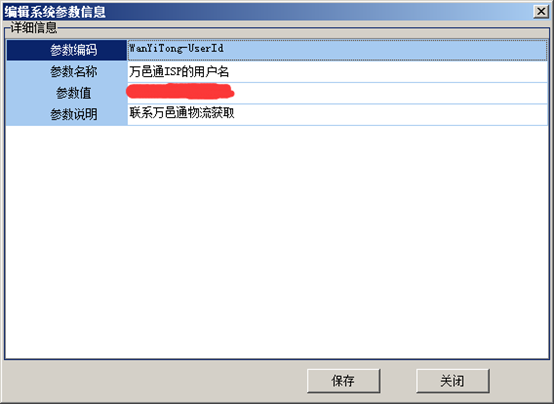 在参数值中分别输入对应的浩远物流 WanYiTong-UserID和WanYiTong-Password;点击保存,配置完成。