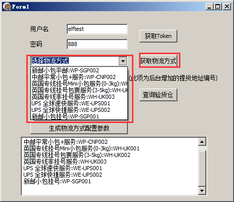 1:点击获取物流方式,在下拉列表可以显示所有的物流方式。